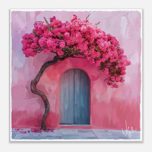 Mediterranean Boho Pink Rustic Door Painting | Framed Maximalist Art Print