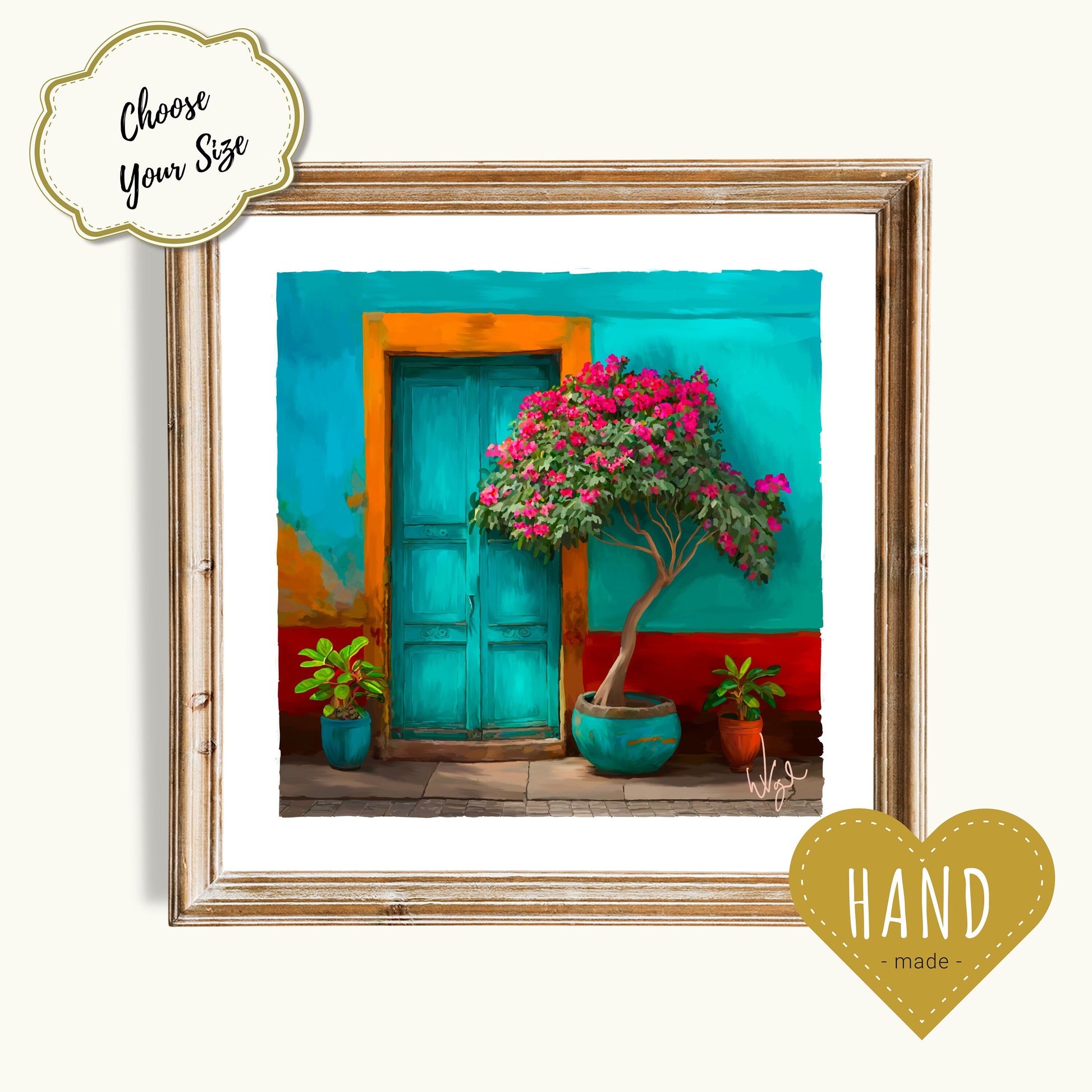 This colorful turquoise and red maximalist door poster is a vibrant addition to your home. Use it in a gallery wall, or brighten up your bedroom, living room, bathroom - or any room that needs a pop of color! Inspired by vivid doorways in Mexico and Central America it's sure to bring a warm memory of shared adventures. It also makes the perfect gift for the travel lovers in your life.